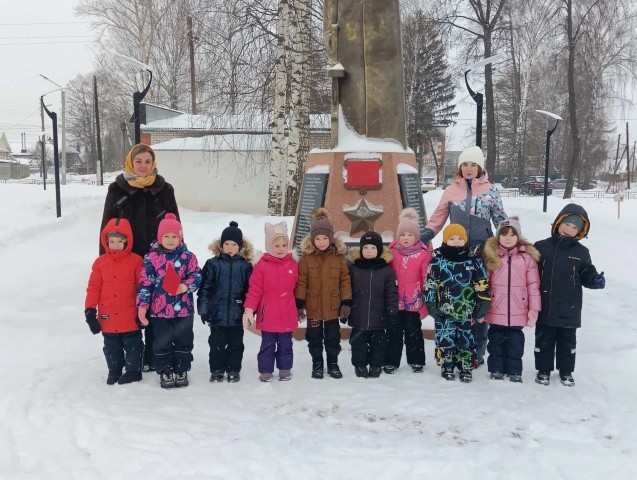 Сопровождение детей подготовительной группы к памятнику павших комсомольцев |